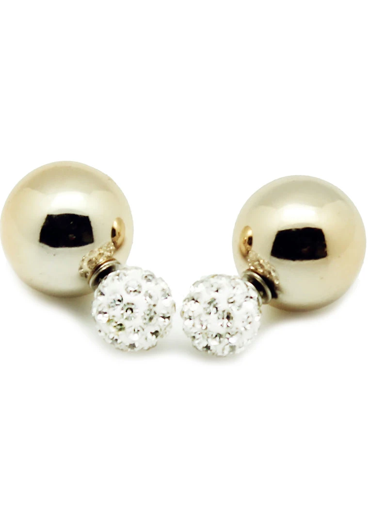 Hit the party with the Crystal Disco Ball Post Stud earrings. These stunning Festival Earrings feature a white colored post stud earring with clear rhinestone accent and closes with a larger metallic gold colored backing.