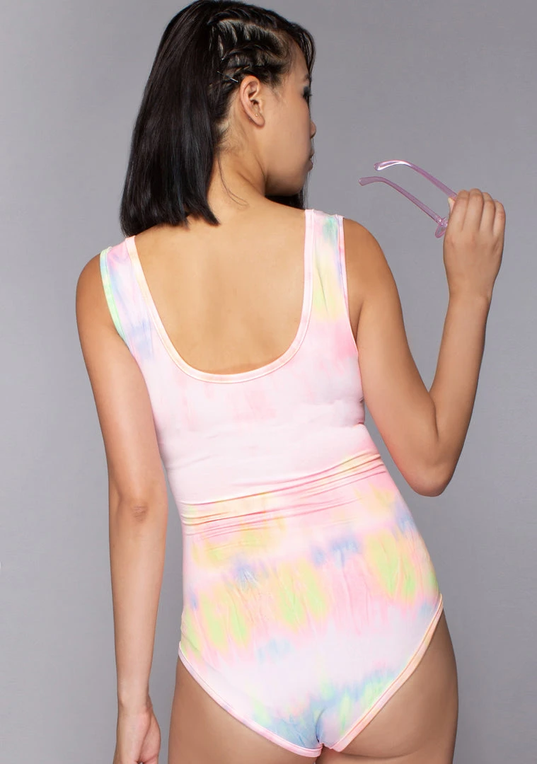 Steal the show at any summer festival when you wear the super cute Pastel Tie Dye Bodysuit from Leg Avenue. This fun rave bodysuits features a soft & stretchy fabric with all-over tie dye pattern, scoop neckline, and snap crotch for comfort and accessibility.