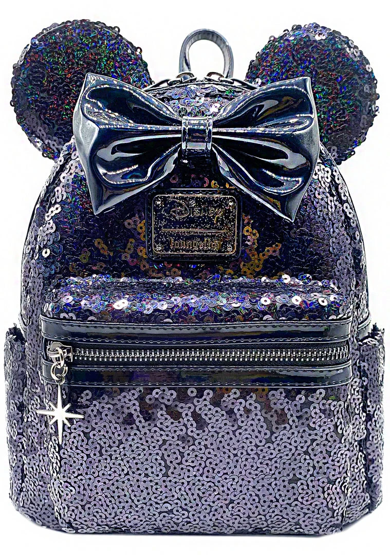 - LASR Exclusive Disney Celestial Dreams Black Holographic Sequin Minnie Mini Backpack