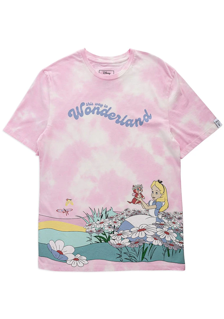 Head to a whole new Wonderland in the Disney Alice In Wonderland Daisy Fields Tee from Loungefly. This cute rave T-shirt features a pink tie-dye short sleeve base with printed details. Put on this cute shirt and head out before you’re late for a very important date!