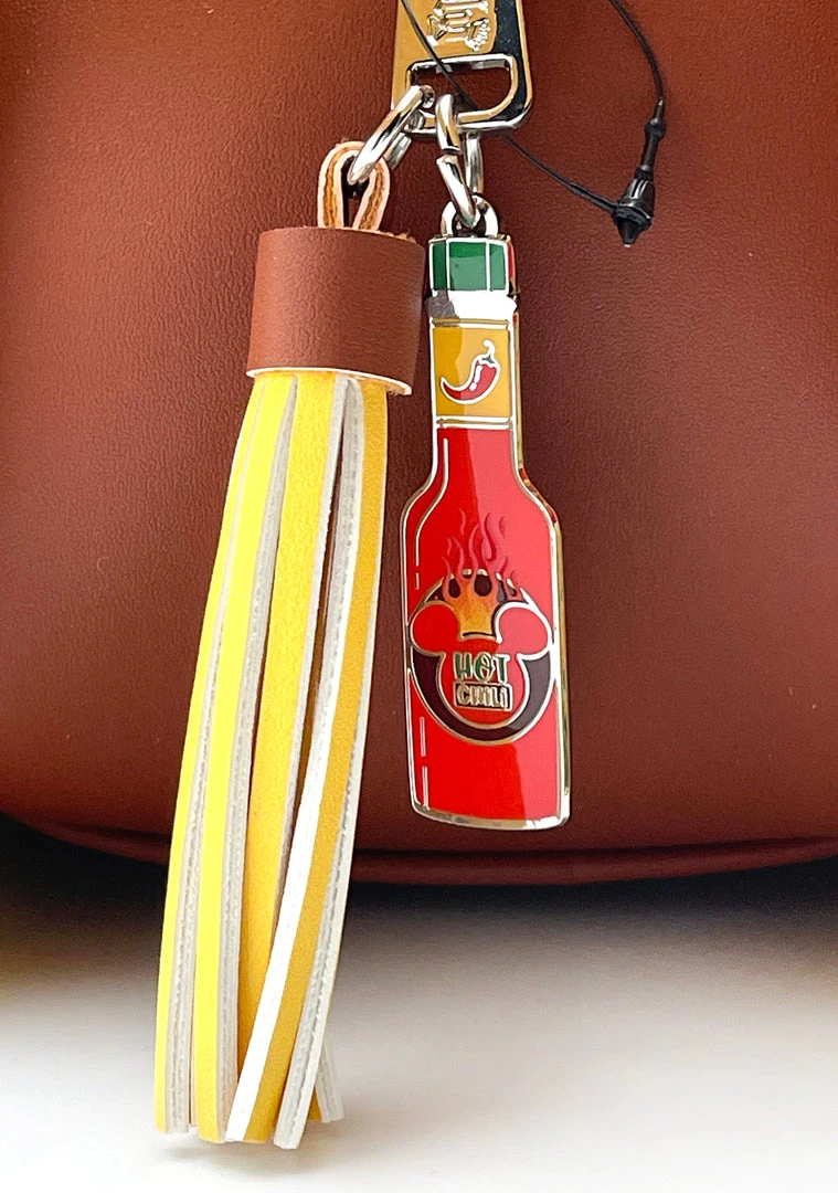 - Hot sauce and string cheese tassel zipper pull charm