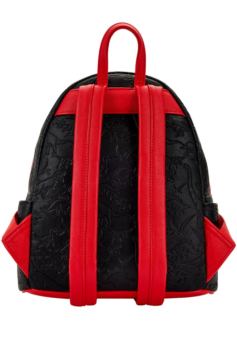 Welcome to the Universal Jurassic Park Logo Mini Backpack from Loungefly! This prehistoric festival backpack features a vegan leather outer with printed and debossed details, a front zipper closure pocket, top handle, zip-top closure, and adjustable straps. #holdon2yerbuttz