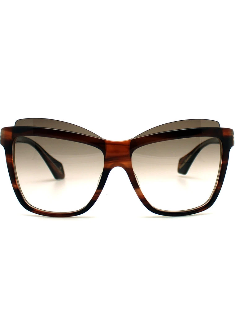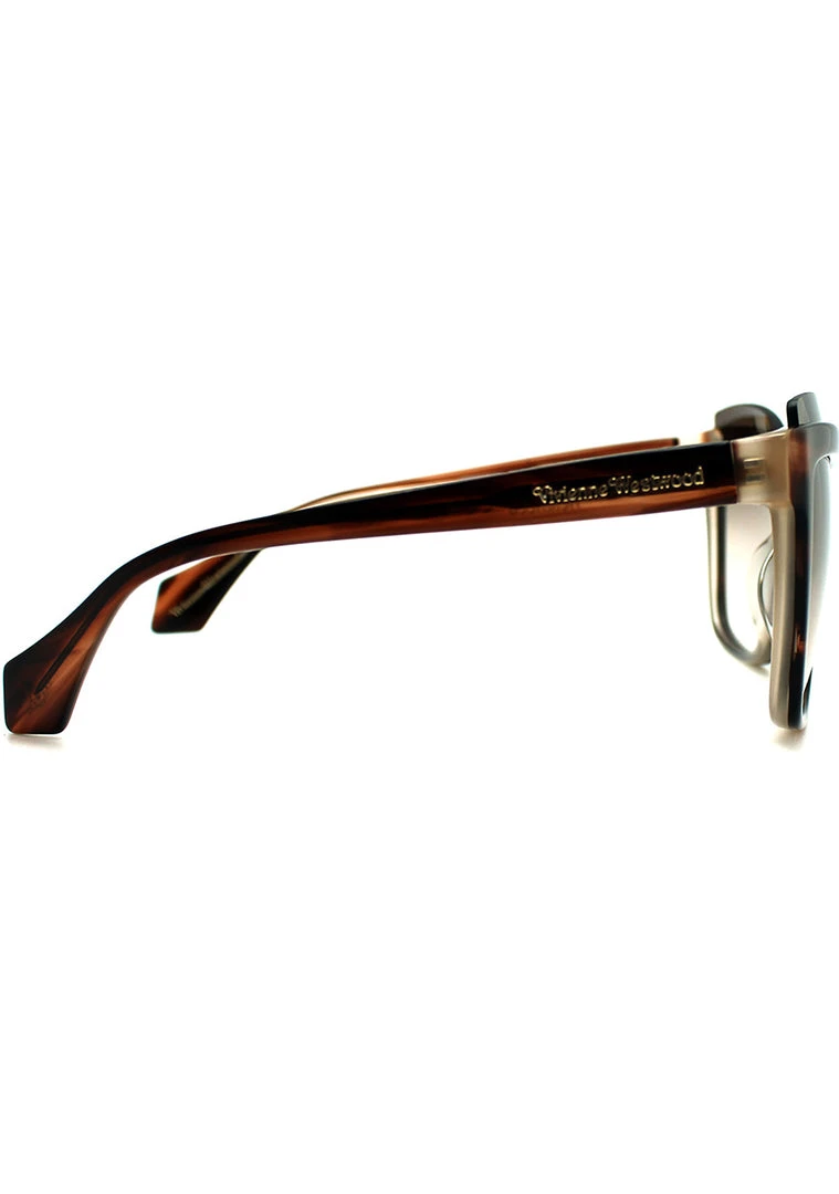 Fall in love with these stylishly finish Cat Eye sunglasses from Vivienne Westwood. These lovely cat-eye must-have festival sunglasses features brown colored acetate frame with oversized underlay brown gradient colored lens, logo shown on temple. Made in Italy.